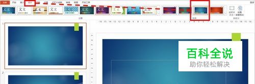 PPT"设计"菜单下有一些内置的主题母版样式,我们 先点击使用其中的 任意一个主题母版样式。