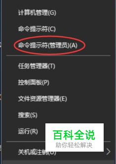 1、在开始菜单上单击右键,在弹出的菜单中选择【命令提示符(管理员)】