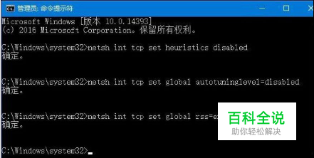 2、打开命令提示符后 键入:netsh int tcp set heuristics disabled 按下回车键执行命令; 3、接着在命令提示符中键入 netsh int tcp set global autotuninglevel=disabled 命令按回车键执行命令; 4、等待以上命令执行后接着输入 netsh int tcp set global rss=enabled 按下回车键;