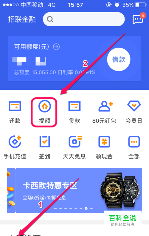 打开【招联金融】app后,点击首页,点击提额,如图所示。