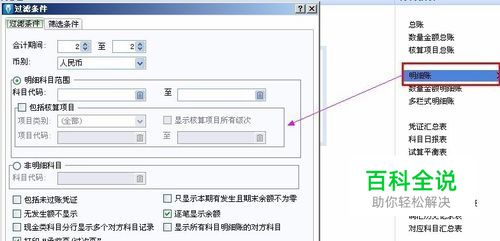 2、明细账查询 明细账可以查询科目辅助资料