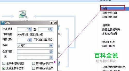 1.总账的查询 在账务处理模块查询总账:总账的显示可以按科目分页显示和打印