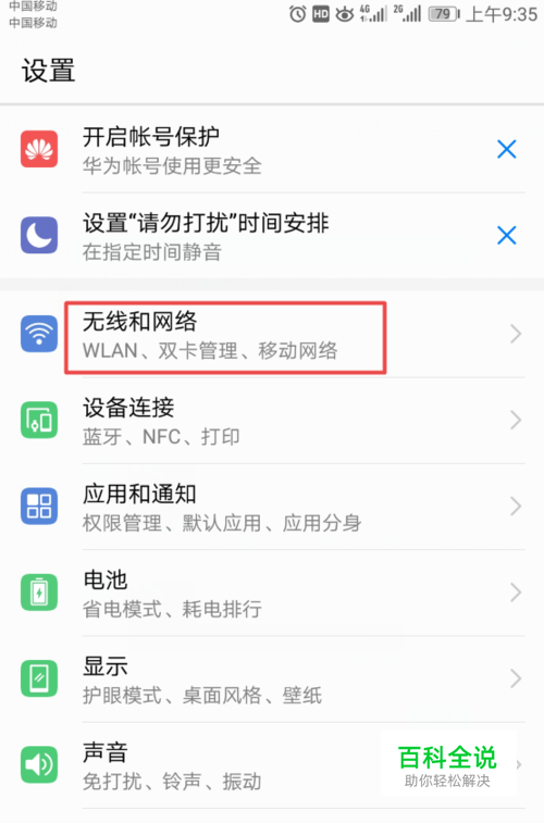 弹出的界面,我们点击无线和网络;