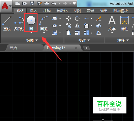 使用圆形命令,在绘图区绘制一个圆形,再在命令输入行内输入re命令,如图所示: