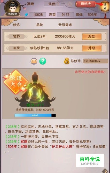 先说说怎么买。点击右上角的坊市,然后再点几个按钮,最后选择珍宝阁。