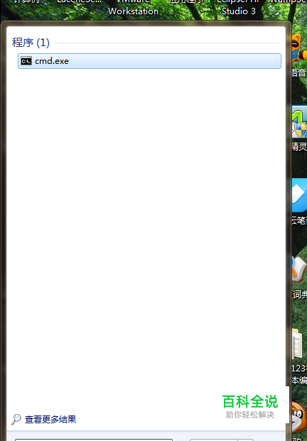 在开始按钮中输入cmd出现如图所示的情况,然后按下enter打开cmd窗口。如图所示。