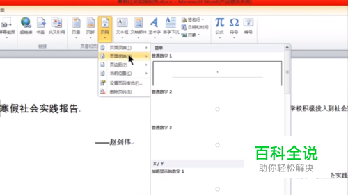 打开word文档,点击“插入”选择“页码”,选择一个合适自己的页码。