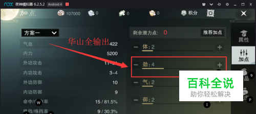 华山加点推荐二:华山全敏输出加点流。加点优点是爆率非常高。输出及其华丽。界面各种暴击字体显示。缺点输出相对没有全劲高。需要玩家镶嵌劲宝石提升角色的劲。