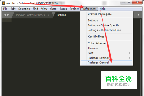 打开安装好的的sublime,选择Preferences下面的Package Contorol选项出现弹窗方框