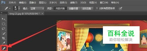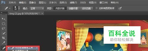 修补工具没有直接显示在工具栏,要通过左边的“污点修复工具”,将鼠标移动到这个图标,然后右击选择“修补工具”进行使用。