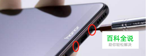 先将荣耀畅玩7C手机关机,然后用卡针把卡托取出来,不先取卡托强行拆机会导致卡托损坏。