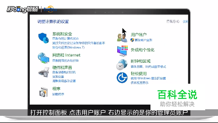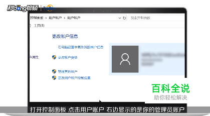 打开控制面板,点击用户账户,右边显示的是管理员账户。