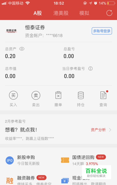 下载后我们登陆我们的手机端,等我们的账号和我们的股票账户。登陆后的就可以看到我们股票账户。