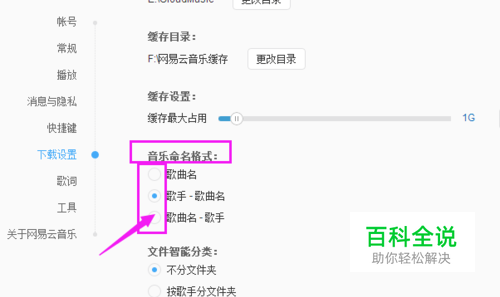 找到【音乐命名格式】,选择自己喜欢的格式。设置生效后,页面会出现“设置已更新”的提示。