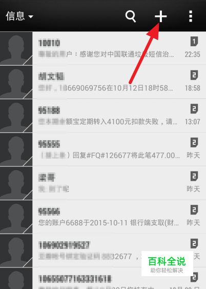 点击打开手机上的短信应用,在你手机的短信中找到你要举报的垃圾短信号码,然后把电话号码复制或者记下来。点击右上角的“+”号,新建一条短信。