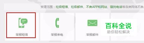 在网站首页的中间位置,可以举报来电、举报邮件、举报网站、举报短信等,找到最左边的举报短信的入口,点击进入。