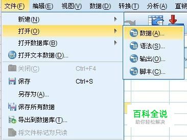 我们的数据存在一份excel表中。 打开SPSS,点击“文件——打开——数据“,