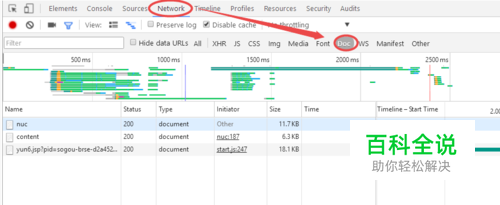 选择network标签页,再选择doc分类