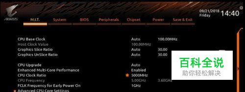 接下来设置CPU倍频。因为目标是超频到5Ghz,所以最简单的方法就是直接将CPU Clock Ratio倍频调至50。在CPU Clock Ratio选项下方还有一个Uncore Ratio选项,技嘉建议将其设定为47。