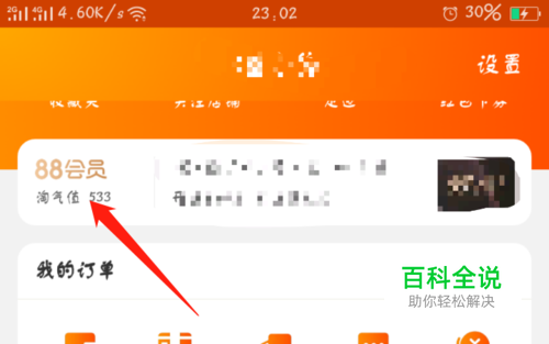 在【我的淘宝】页面,在个人信息下面有一个【88会员】和你的淘气值。点击进入