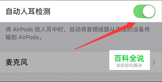 最后是关于自动人耳朵检测功能,在你开启这个功能时,如果没带耳机,声音将会通过扬声器播放,一般我们不打开开关,这样无能佩戴与否都将通过airpods播放,如下图所示