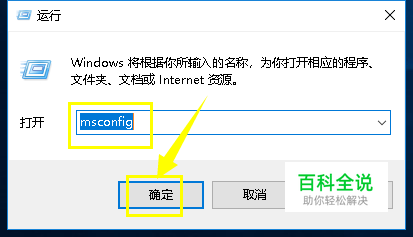 在运行中输入msconfig,点击确定按钮,如下图所示