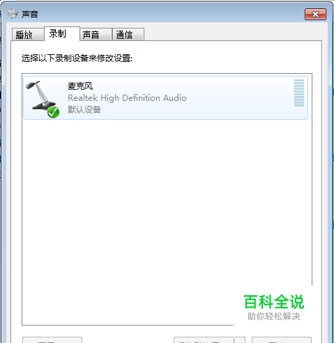 然后确定是不是自己的声卡驱动出了问题。依次点击开控制面板-硬件和声音-管理音频设备,如图,如果播音和录音是如图所示的状态则说明驱动并无问题;