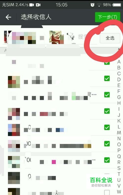 点击右上角“全选”