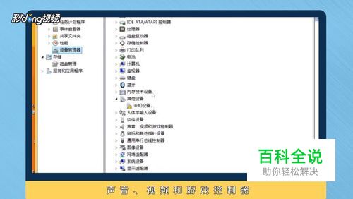 进入后,点击“设备管理器”,声音、视频和游戏控制器。