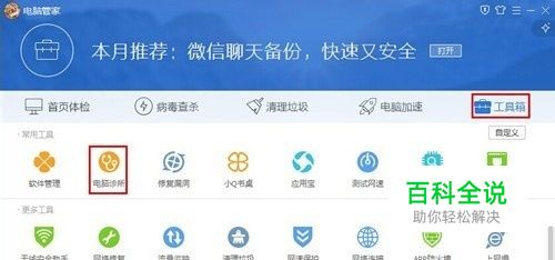 首先打开电脑管家,再点击电脑诊所,如图所示