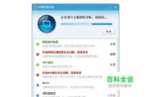 出现如图问题时,点击360断网急救箱