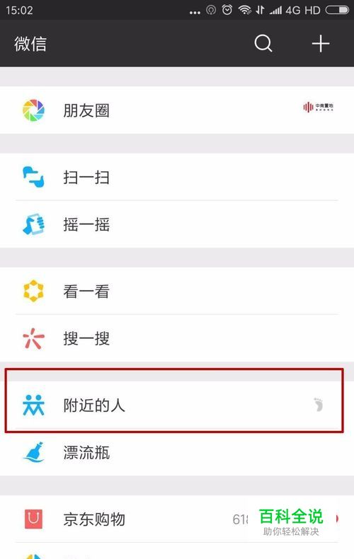在发现标签,我们可以看到微信的一些互动项目,我们找到“附近的人”并点击进入。