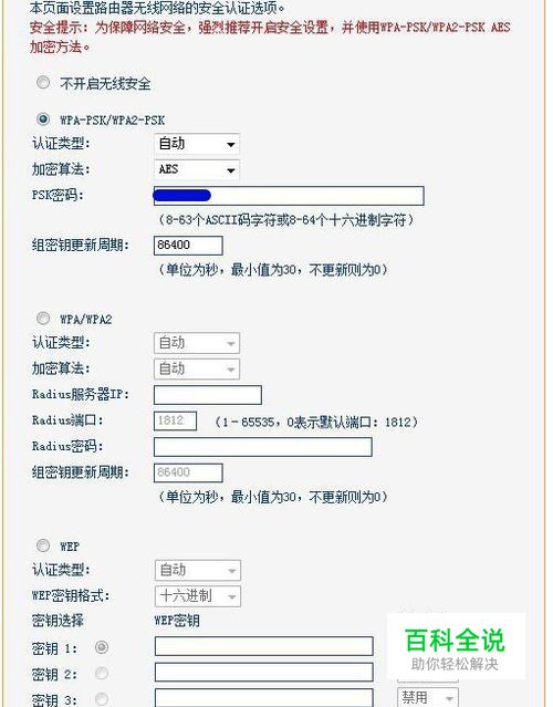 再点开无线安全设置,一般选WPA-PSK/WPA2-PSK,认证方式自动,设置无线密码即可,记得点下边“保存”