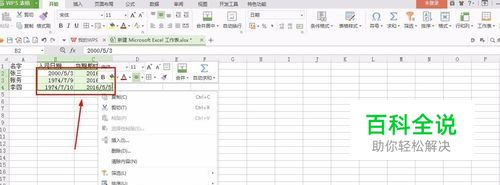 选中填写日期的所有单元格,如图所示,右击鼠标,点击‘设置单元格格式’