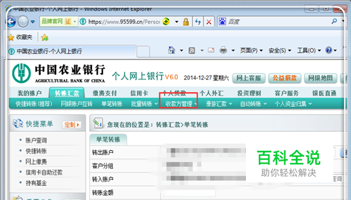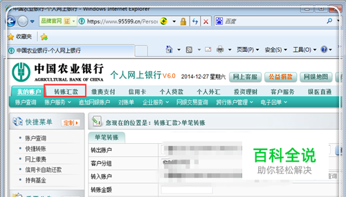 首先使用k宝登录,进入个人网上银行,点击“转账汇款”。