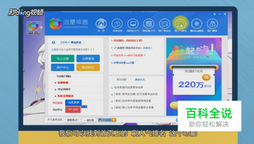 之后打开流量神器,登录它即可找到首页上的“刷人气排名”这个功能。