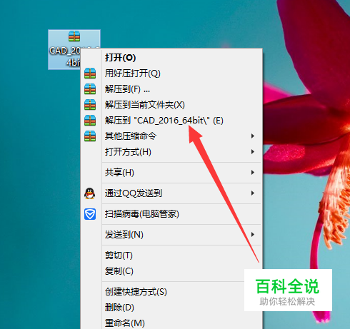 右击下载好的软件压缩包,选择解压到CAD2016
