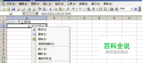 可以看到,18位数字,显示的有问题,而且最三位居然是000,我可以肯定自己输入的不是000,前面说了,这是因为EXCEL最多只支持15位数字,超过的就显示000了。选择刚刚的数字所在的单元格,右键“设置单元格格式”