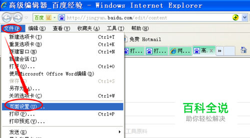 打开网页内容,选择IE里的“文件”-》“页面设置”。