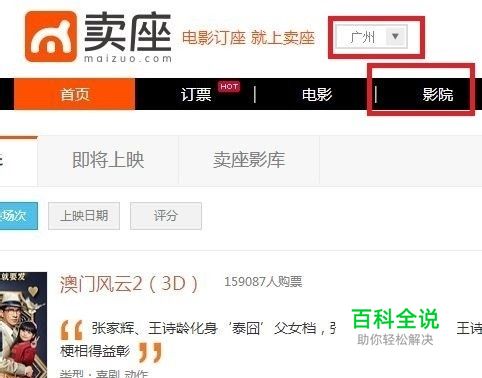 注册卖座网账号,并登录;选择看电影的城市,点击“影院”