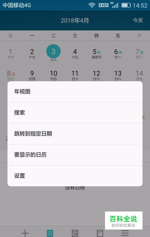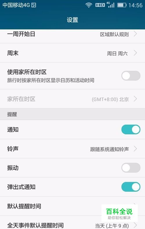 设置全天事件默认提醒时间:点击日历——菜单——设置——提醒——设置全天事件默认提醒时间,根据自己的需要点击选择就可以了。这里都是提前某一天的上午9点提醒。
