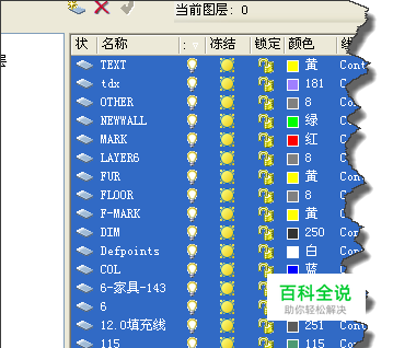 在”图层特性管理器”窗口中,ctrl+A选择所有的图层。