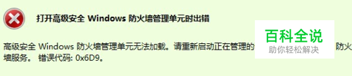 出现错误代码:0×6D9的信息的原因,很多时候都是因为Win7旗舰版系统默认禁用了Windows防火墙服务而造成的,其实只需打开Windows firewall服务就可以了,启动防火墙还有可能出现下图这种情况,也是同样的解决办法。