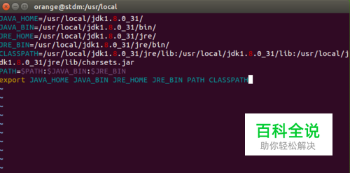 接下来就是配置JDK的环境变量了,让系统认识JDK在哪里。我选用的做法是在 /etc/profile.d/ 中添加脚本。 # vim /etc/profile.d/jdk1.8.sh 添加以下内容: JAVA_HOME=/usr/local/jdk1.8.0_31/JAVA_BIN=/usr/local/jdk1.8.0_31/bin/JRE_HOME=/usr/local/jdk1.8.0_31/jre/JRE_BIN=/usr/local/jdk1.8.0_31/jre/bin/CLASSPATH=/usr/local/jdk1.8.0_31/jre/lib:/usr/local/jdk1.8.0_31/lib:/usr/local/jdk1.8.0_31/jre/lib/charsets.jarPATH=$PATH:$JAVA_BIN:$JRE_BINexport JAVA_HOME JAVA_BIN JRE_HOME JRE_BIN PATH CLASSPATH
