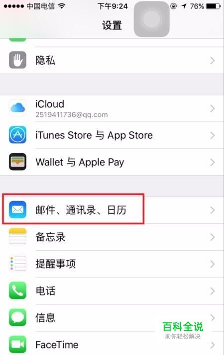 方法一:导入SIM卡通讯录 1、打开手机主屏上的“设置”图标。在打开列表中选择“邮件、通讯录、日历”,点击进入;