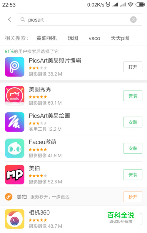 首先在应用商店里面搜索 picsArt