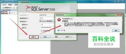 SQL 2008连接数据库时出现“无法连接到服务器”