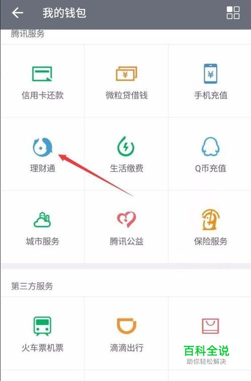 然后就会进入到钱包面板,此时单击“理财通”选项卡。