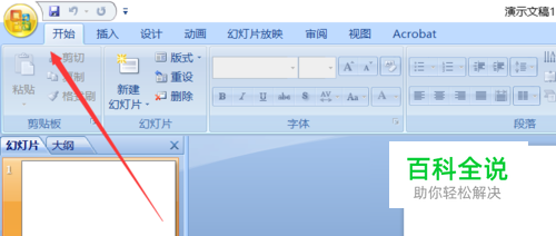 在已经制作完成的幻灯片的左上角点击PPT图标