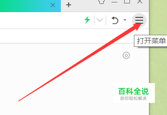 先找到我们浏览器上的打开菜单选项,这个每个浏览器可能都不一样,但是菜单选项一定要先找到。